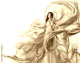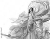 Fashion Model Dress, Woman in Flowing Fabric Gown, Clothes Flow