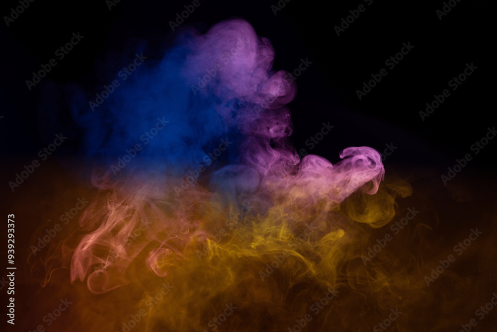 Yellow and pink steam on a black background.