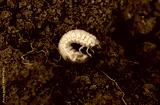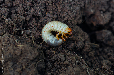 Horn beetle larvae (Oryctes rhinoceros) closeup on the ground