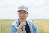 Rural Woman Working in a Sunlit Cornfield on a Warm Summer Day