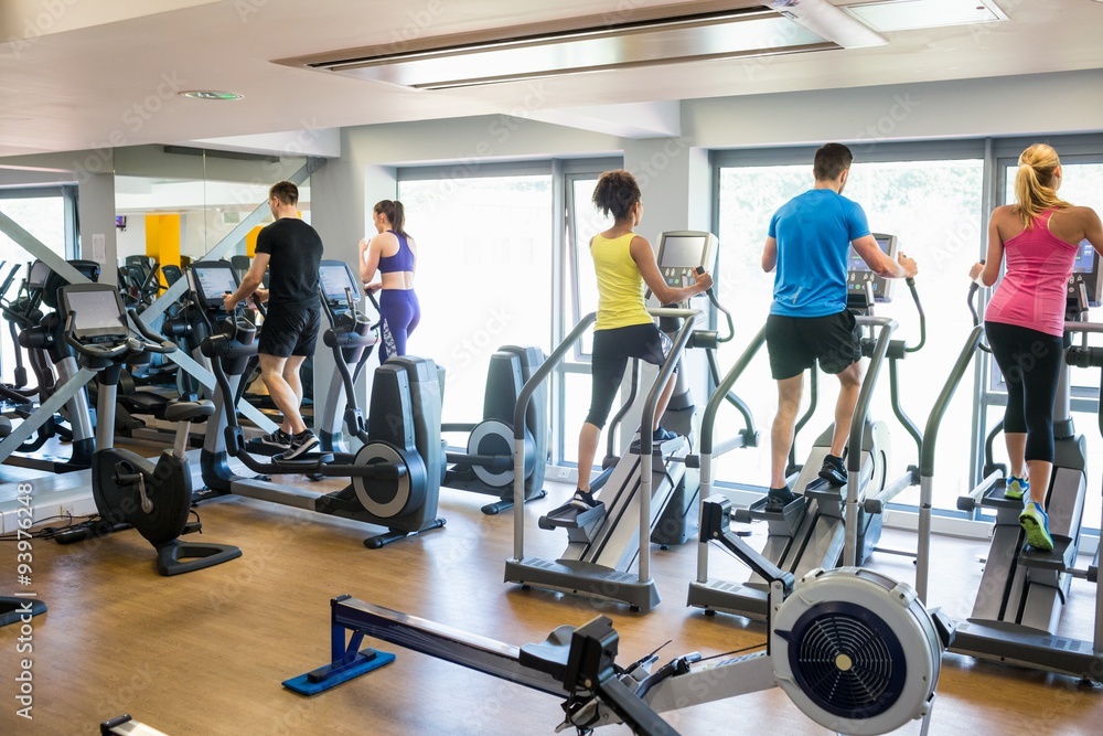 Fit people working out using machines