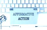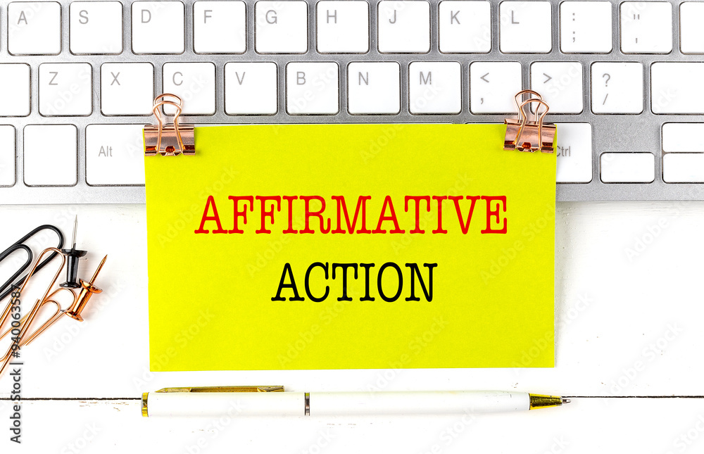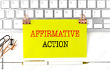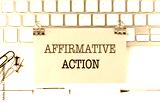AFFIRMATIVE ACTION text on yellow sticky on keyboard