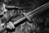 Viking sword and knife on a fur