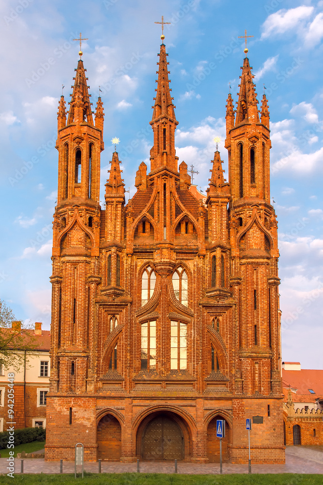 Facade of Saint Anne's church at sundown light in Vilnius