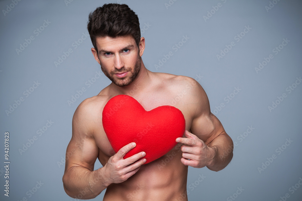 Muscular man holding heart shape