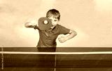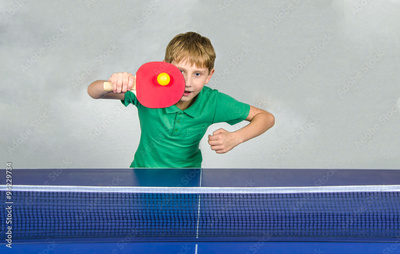 Little Boy Playing Table Tennis Youth Sports Action Shot