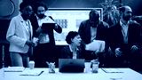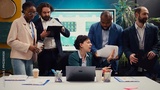 Irritated difficult boss getting angry at her employees team after not finishing the project before the deadline. Crazy manager yelling at her staff members and throwing papers. Camera B.