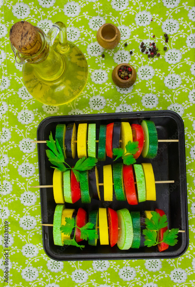 Ratatouille, stewed vegetable dish with tomatoes, zucchini, eggp