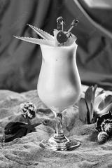 Tropical pineapple milkshake sand leaves Cherry beach sea ocean