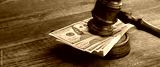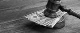 Judges Gavel, Soundboard And Bundle Of Money On The Table