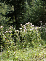 (Eupatorium cannabinum) Eupatoires à feuilles de chanvre aux tiges dressées rouge-violacée, aux fleurs terminales rose en corymbes et au feuillage vert trifolié à marges dentées