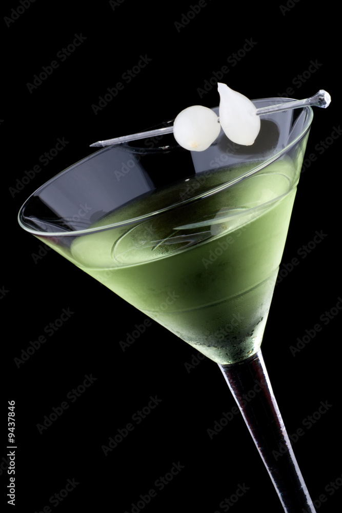 Kyoto cocktail in chilled martini glass over black background