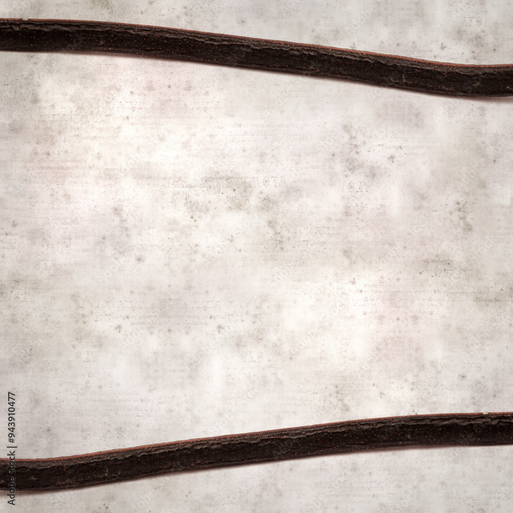 textured stylish old paper background, square, with long dark seedpods of Senna spectabilis, golden wonder tree