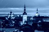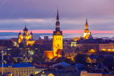 Aerial view old town at sunset, Tallinn, Estonia