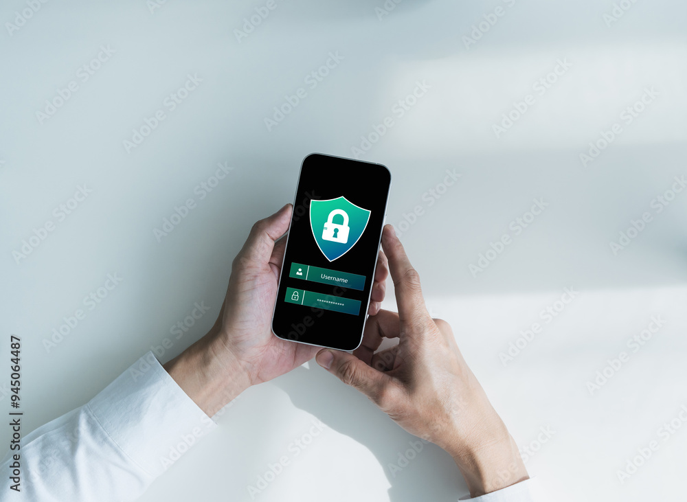 Businessman log in or access by using biometric with user and password. Online verification for personal privacy security protection system. Anti cyberspace malware and hacker concept.