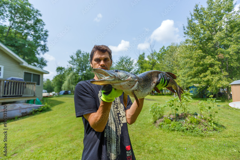 Fisherman holding Big pike
