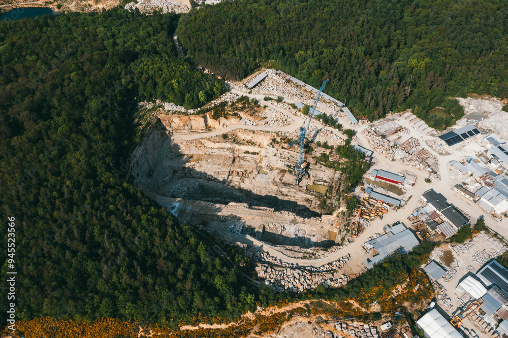 Aerial View of Quarry in Lush Forest Area