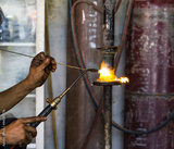 Welders were repairing cutting Shock absorbers