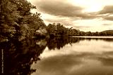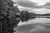 Fall foliage reflects in Hessian Lake at sunset, near Bear Mountain, NY