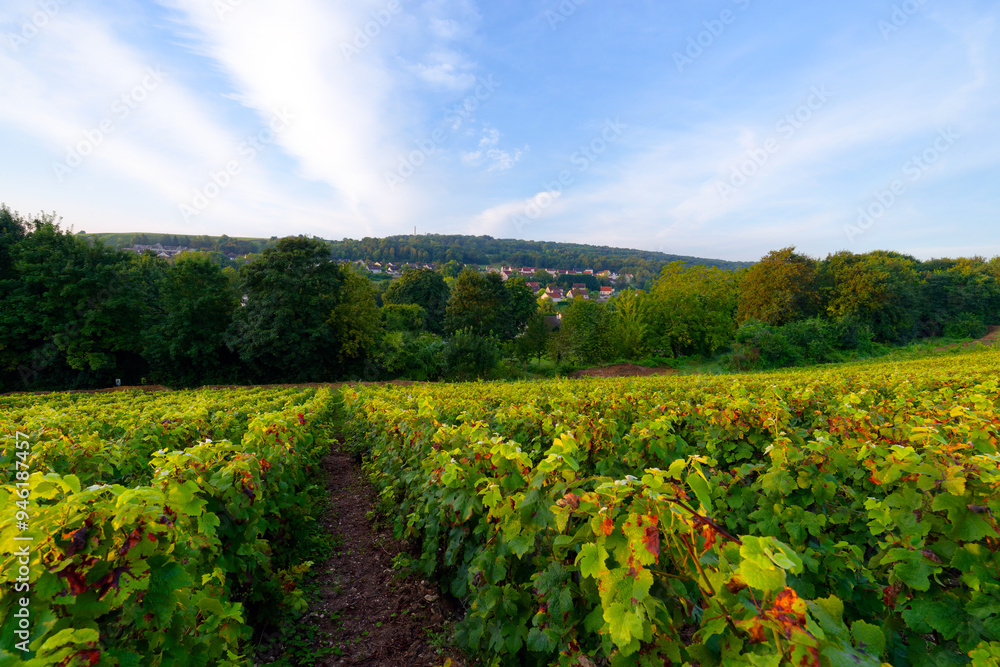Champagne vineyards on the hillside of Essomes-sur-Marne village