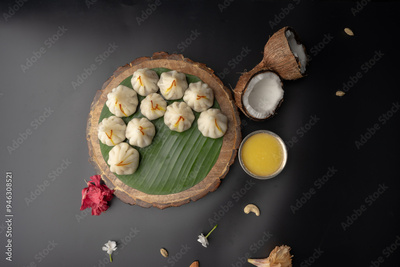 Steamed Modak, white modak, ukdiche modak made from rice flour and coconut jaggery filling. Modak is a traditional Indian sweet made during Ganesh Utsav