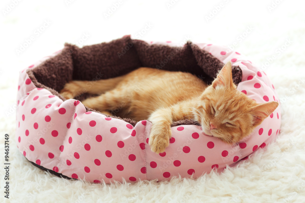 Kitten sleeping in the bed