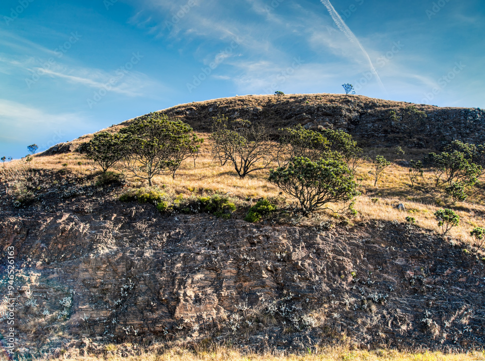 rock erosion effects in the granite from external factors, stones falling, mountain range african