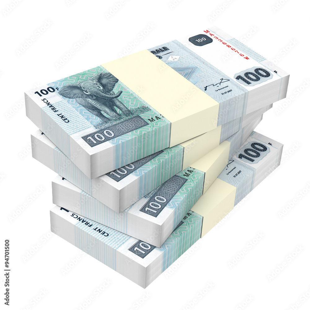 Congolese francs isolated on white background. Computer generated 3D photo rendering.