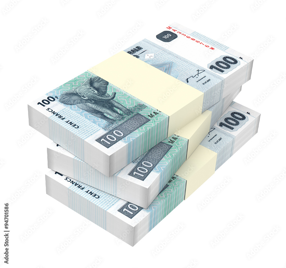 Congolese francs isolated on white background. Computer generated 3D photo rendering.