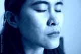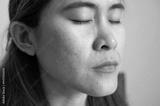 Close up of Asian woman face having freckles and enlarged pores problem on her skin.