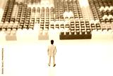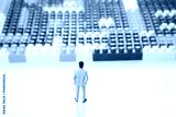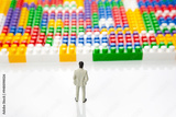 miniature people. figures of people stand near the colored plastic blocks of the designer. concept of business and industrial development. the concept of dreams and choice of life direction