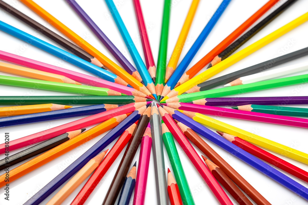 set of colored pencils for drawing on a white background. artistic creativity of drawing. color pencil