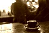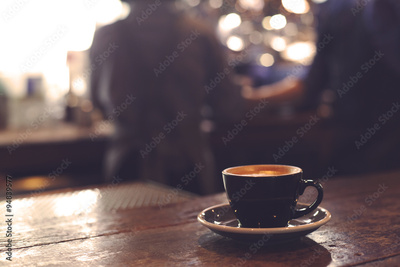 A cup of coffee on counter bar