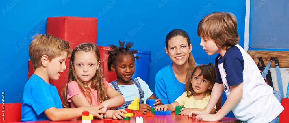 Kinder spielen mit Bausteinen im Hort