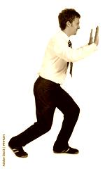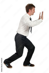 businessman pushing sideways