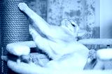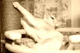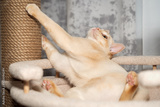 Burmese shorthair kitten lying in bed on tree.