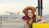 young woman tourist at airport