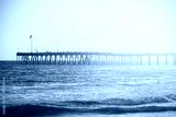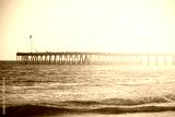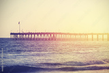 Vintage toned wooden pier on beach at sunset, California, USA