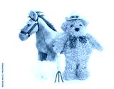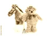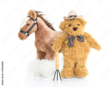 Teddy bear farmer with pitchfork and horse