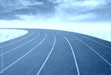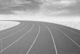 outdoor running track with desert and sky background