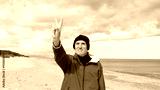 Middle Age Fisherman Making Victory Sign At The Beach