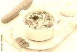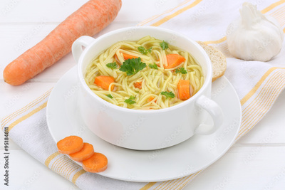 Nudelsuppe Suppe mit Baguette Brühe in Suppentasse