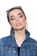 Young sexy latin woman biting gelatin candy
