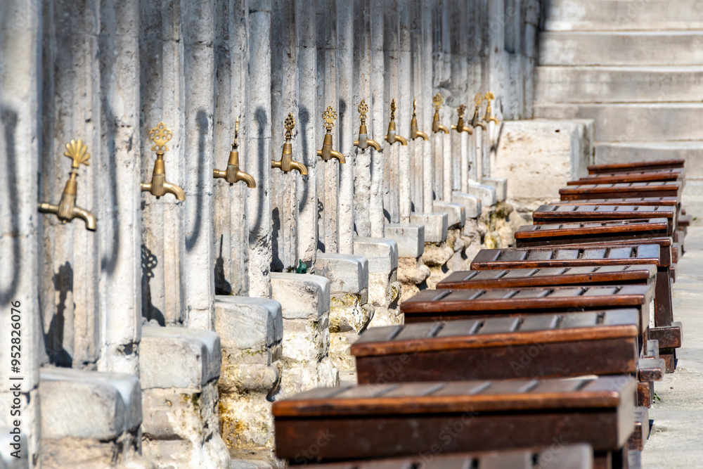Ritual ablution stations used by Islamic worshippers before entering the mosque for prayer