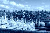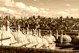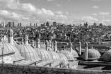 Domes of the madrasa of Suleymaniye Mosque with the Golden Horn and the skyscrapers of modern Istanbul