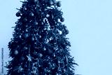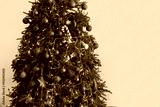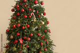 Glowing Christmas tree on beige background
