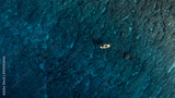 Kayaking on transparent kayak in blue tropical ocean. Aerial view