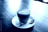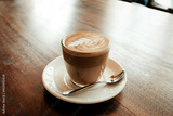 Cortado in a glass with a saucer and spoon
