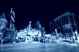 Niagara Falls, Canada - August 5, 2024: Downtown Niagara Falls streets and buildings at night in summer season