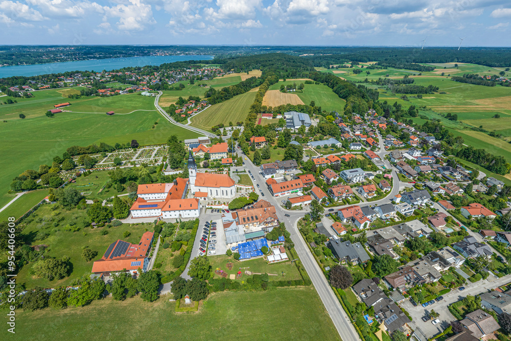 Aufkirchen am Starnberger See im Luftbild, Blick über das Kloster zum nördlichen See und nach Berg